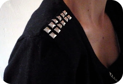 J’avais un pull uni noir en V acheté un prix rikiki chez H&M (9,95€) et il me restait quelques clous …..