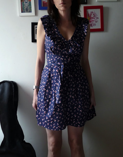 C’est d’abord son motif qui m’a fait craquer, tout ces petits nœuds, oui moi j’aime ça les petits nœuds nœuds et puis bon j’avais pas de robe bleue marine… non non.. je vous vois venir ce n’était pas une excuse pour me donner bonne conscience car vu son prix, 9€ j’allais quand même pas hésiter, non ? ….