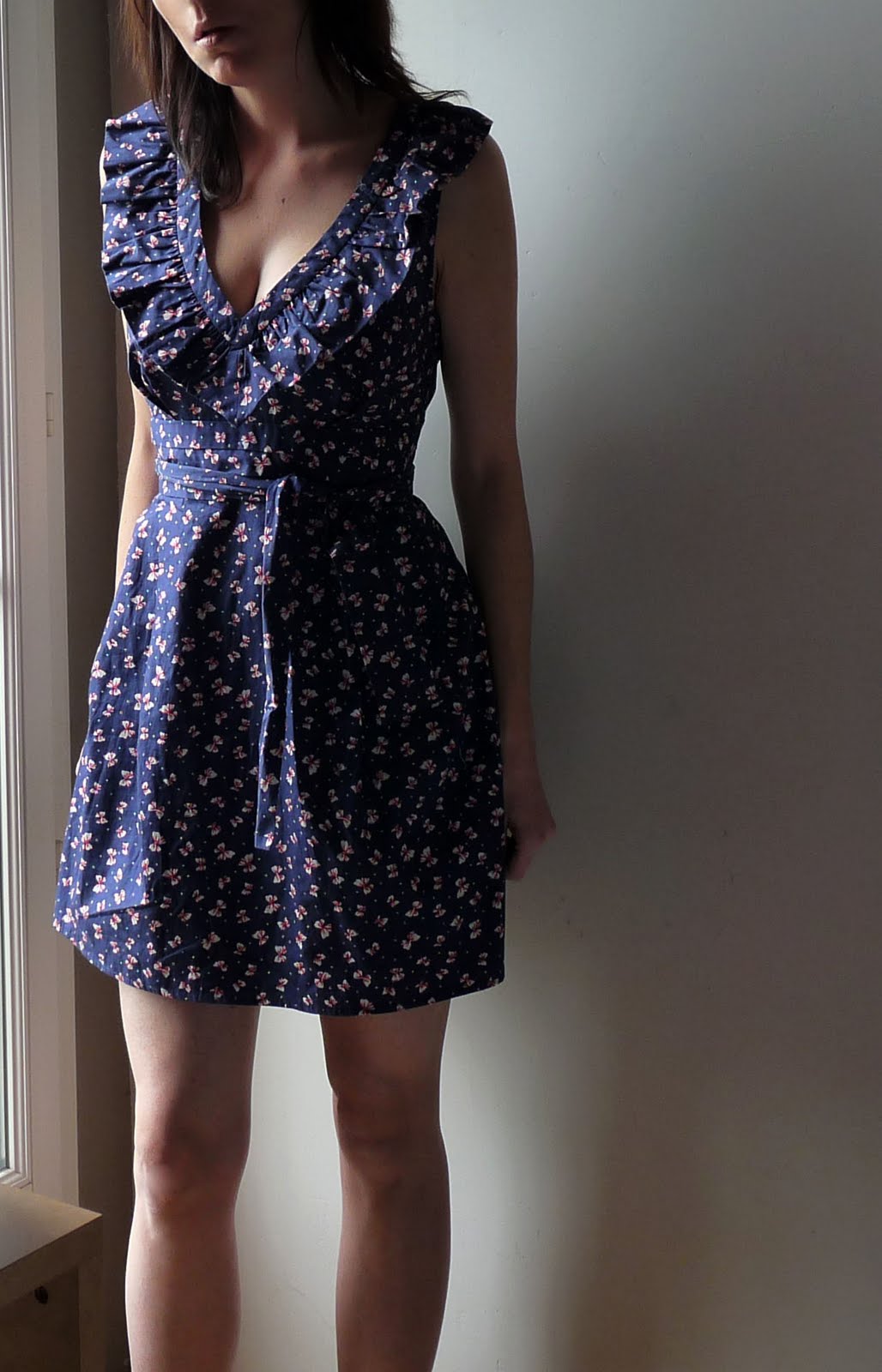 C’est d’abord son motif qui m’a fait craquer, tout ces petits nœuds, oui moi j’aime ça les petits nœuds nœuds et puis bon j’avais pas de robe bleue marine… non non.. je vous vois venir ce n’était pas une excuse pour me donner bonne conscience car vu son prix, 9€ j’allais quand même pas hésiter, non ? ….