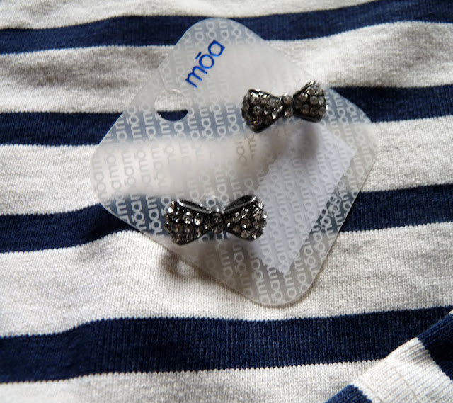 Je suis allée faire un petit tour chez ETAM où j’ai rapporté je n’ai rien trouvé côté fringues mais plutôt au rayon des accessoires avec ses boucles d’oreilles noeuds et un foulard avec des petites étoiles