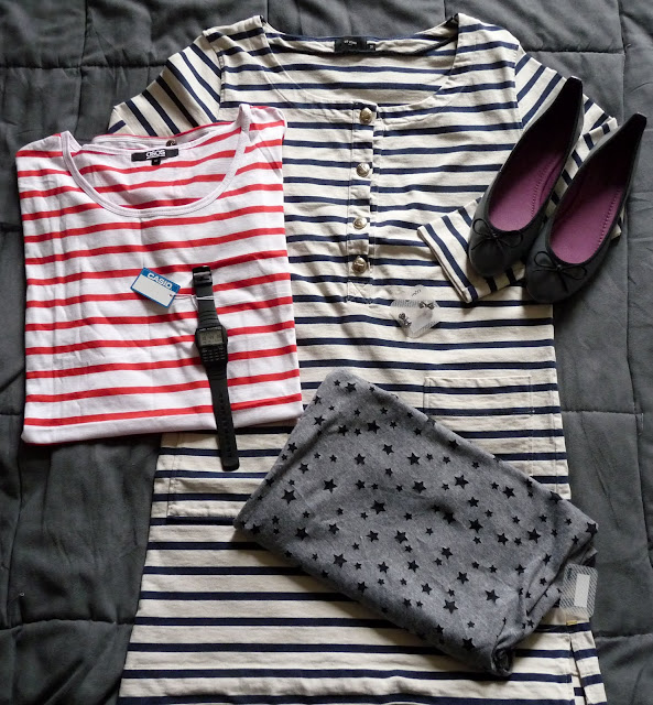 J’ai reçu cette marinière tunique rouge, dont j’aime beaucoup les petits boutons dorés sur les épaules et une montre CASIO rétro data bank pour changer de celle que j’ai en métal, le tout de chez ASOS