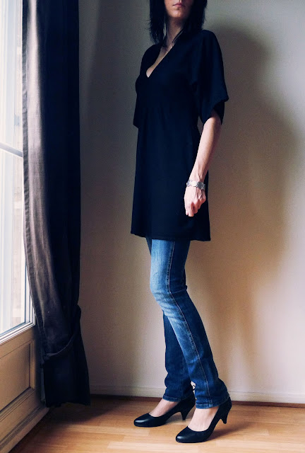 J’ai essayé de rentre un peu moins classique l’Escarpin, en le portant avec un jean et une robe /tunique …