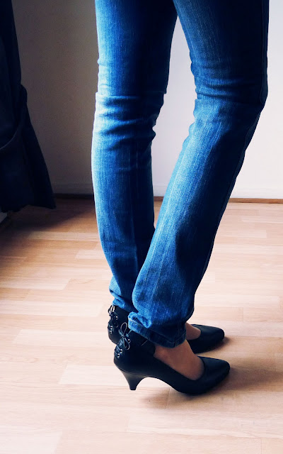 Je crois que pour ce type de chaussures, il vaut mieux soit choisir du plat (type ballerine) ou soit carrément opter pour des très hauts talons.. mais avec mon mètre 77 j’ai un peu mal même si je trouve ça super joli …