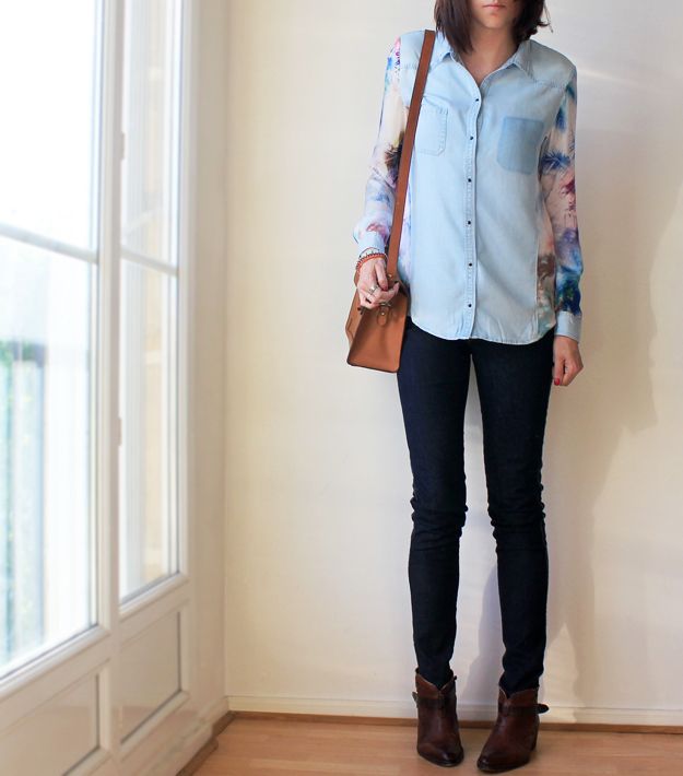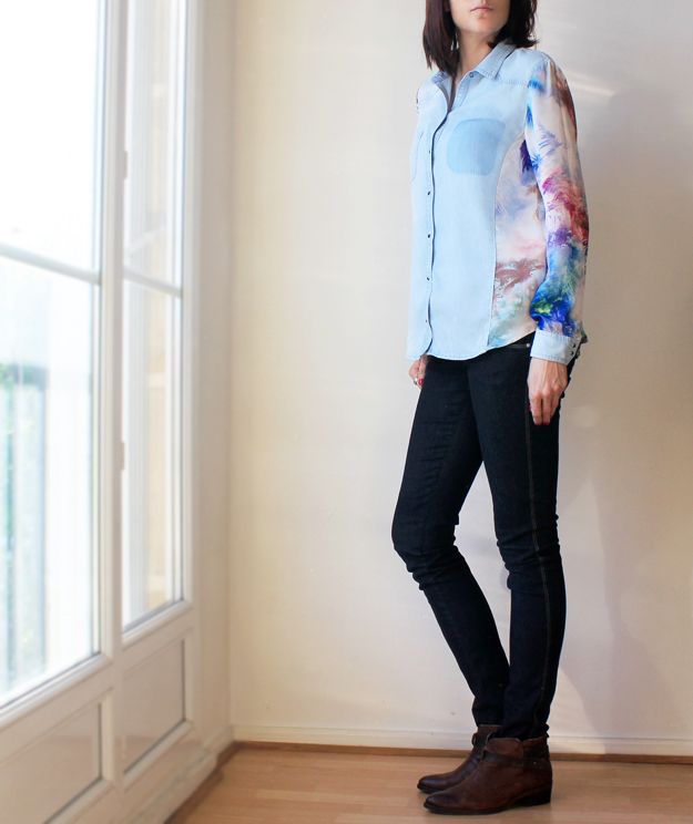 Un Look assez basique mais avec une petite nouveauté, ma nouvelle Chemise en jean imprimée tropicale de chez l’espagnole pour laquelle j’ai craqué il y a peu…