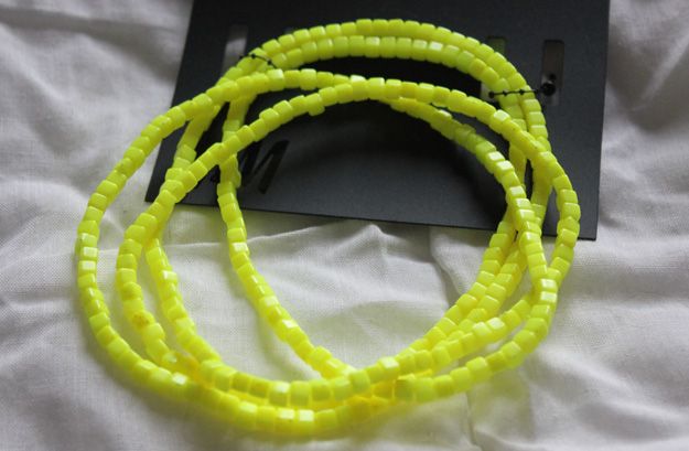 Et pour j’ai pris aussi un Collier double en perles fluo jaune à 2,95€, pour celles qui ne veulent pas investir beaucoup et rester dans la tendance c’est l’idéal pour égayer une petite tenue basique…