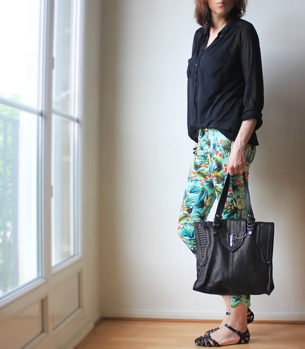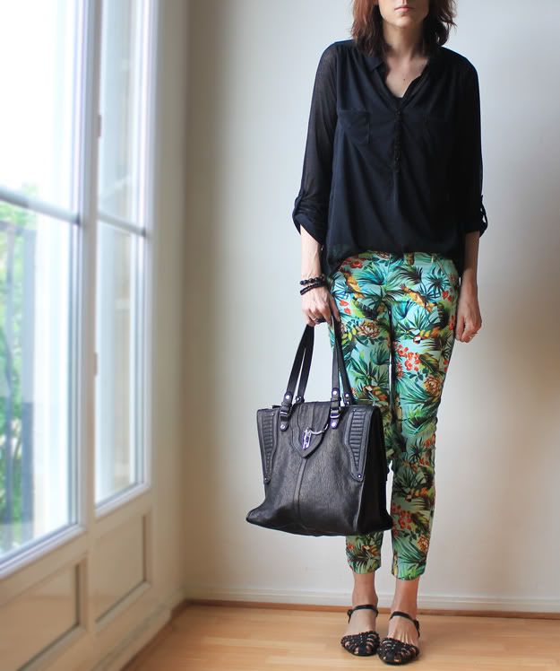 Mais pour le reste, je la joue sobre avec une blouse noire basique et des petites sandales, l’imprimé à lui seul fait tout le boulot, inutile d’en faire trop…