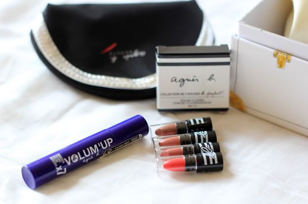 – Une mini Trousse contenant, un Mascara Agnès.B (17,90€ le full size sans promo soit 7,20€) et un lot de mini Rouge à lèvres (ou embelisseur abricot)