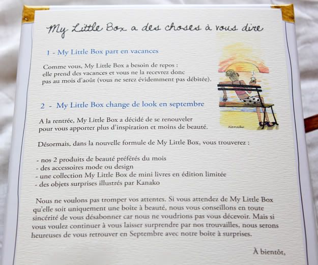Vous n’êtes pas sans savoir qu’à la rentrée, le concept de My Little box vas évoluer… pour ma part je vais voir ce que donne cette nouvelle version en septembre et je déciderai par la suite si elle me convient… ou pas