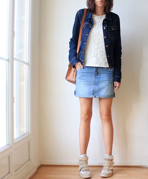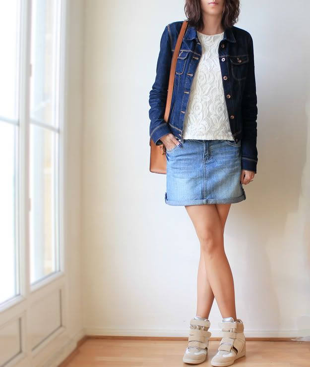 Aujourd’hui je les porte avec ma nouvelle Jupe en jean et un petit Top…