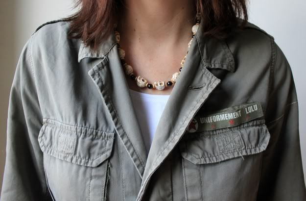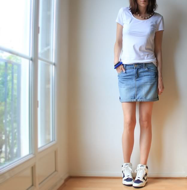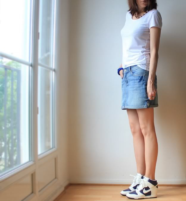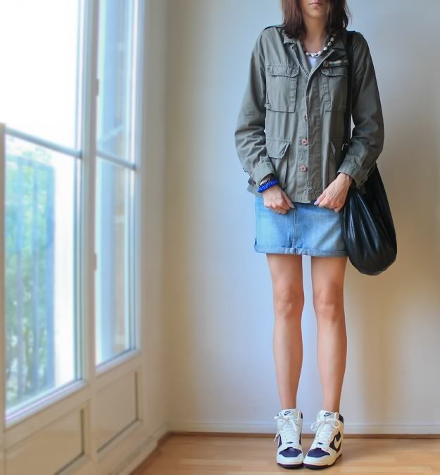 Comme c’est l’été et qu’il fait chaud.. les slims on oublie… Alors j’ai ressorti ma petite Jupe en jeans, Ma Veste kaki qui date de très très longtemps et un petit Top et hop !!
