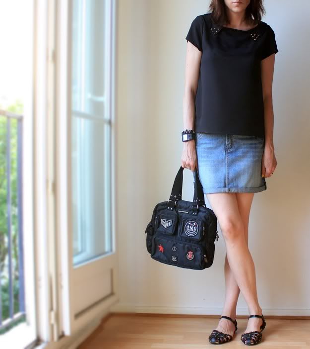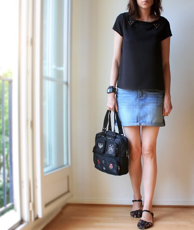 Alors j’ai mis ma petite Jupe, mon nouveau Top clouté très fluide, des sandalettes et hop… on se motive pour sortir !!