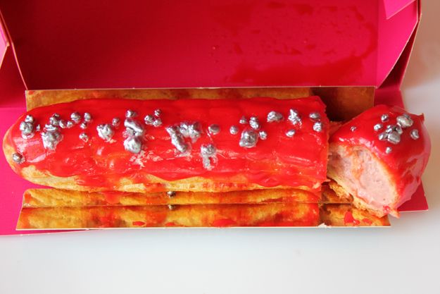 Alors bien-sûr vous retrouvez toujours l’éclair au chocolat, vanille ou café, mais vous pourrez découvrir des saveurs étonnantes, surprenantes qui raviront vos papilles…
