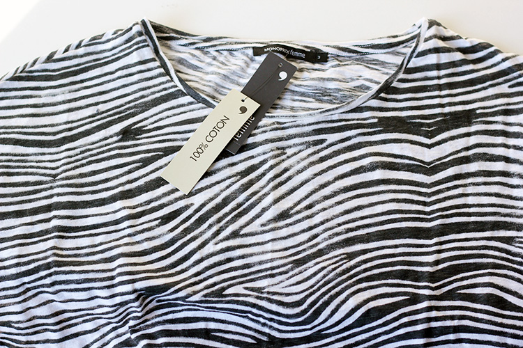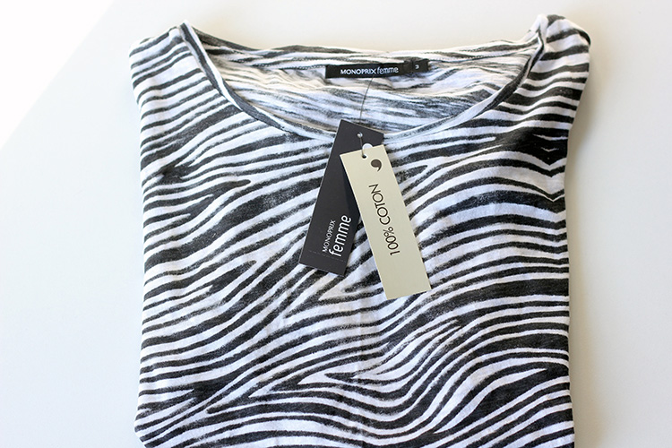 Un petit Top zébré et des Gants à pois chez Monoprix…