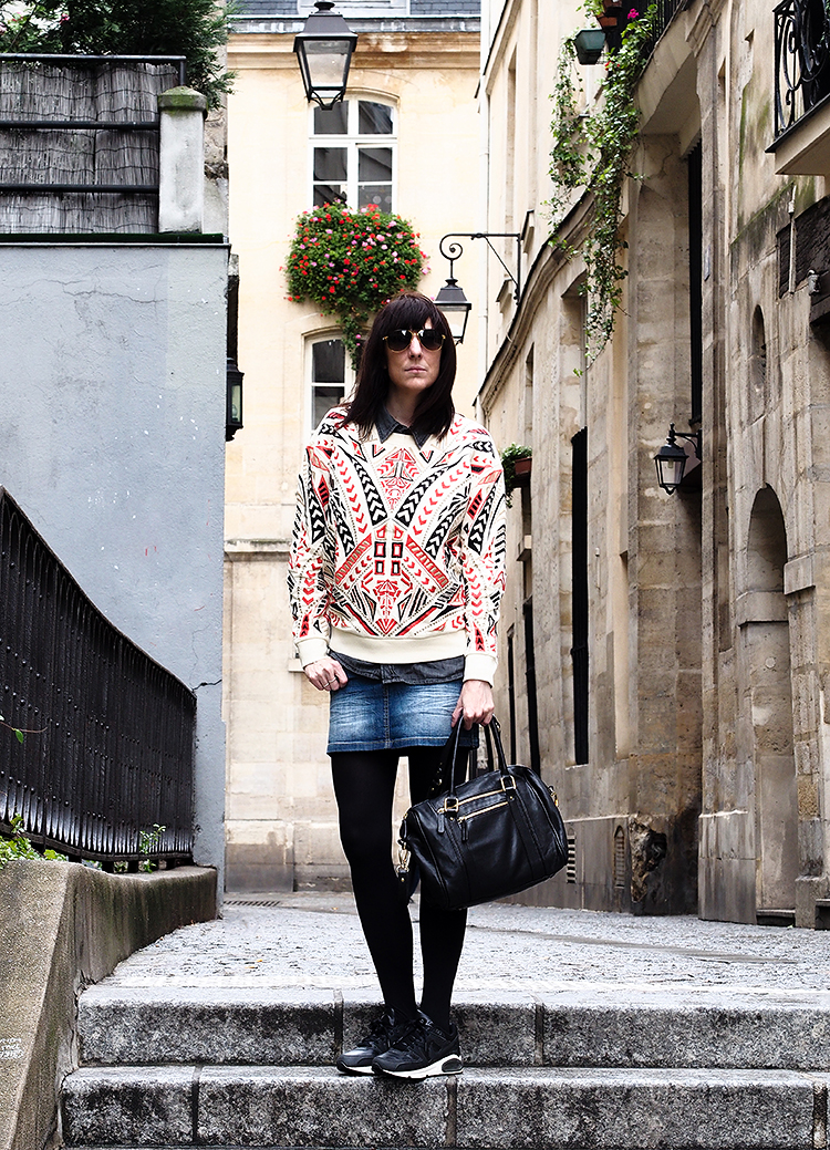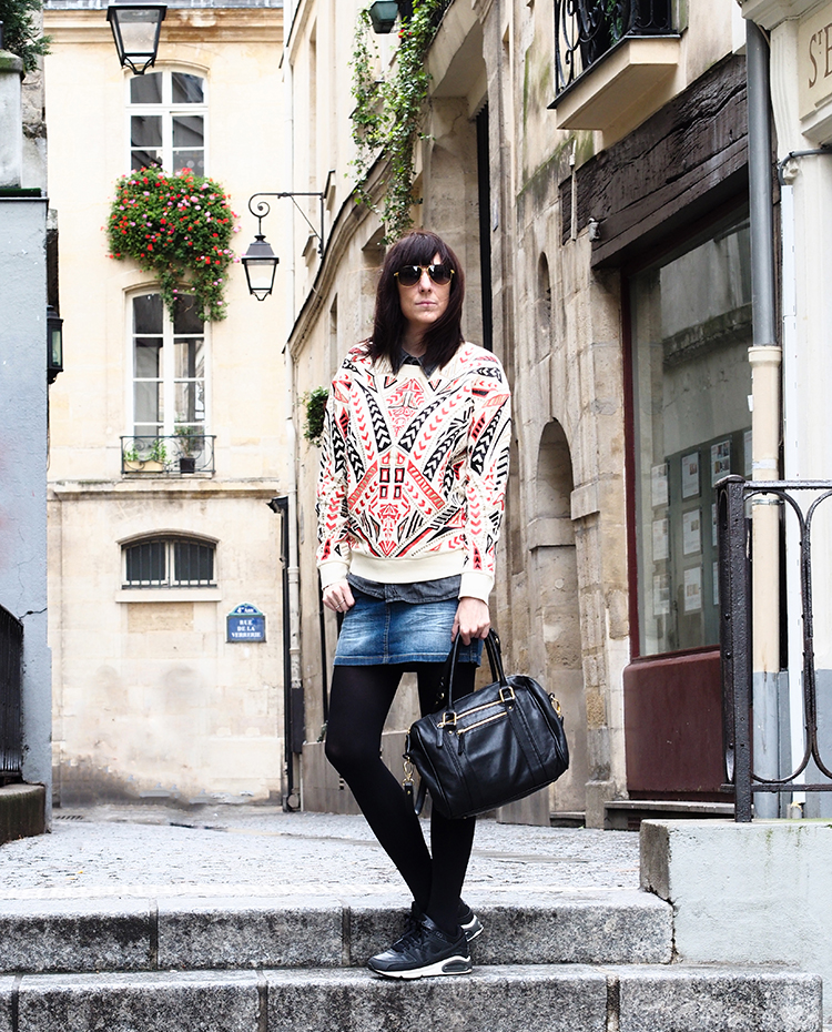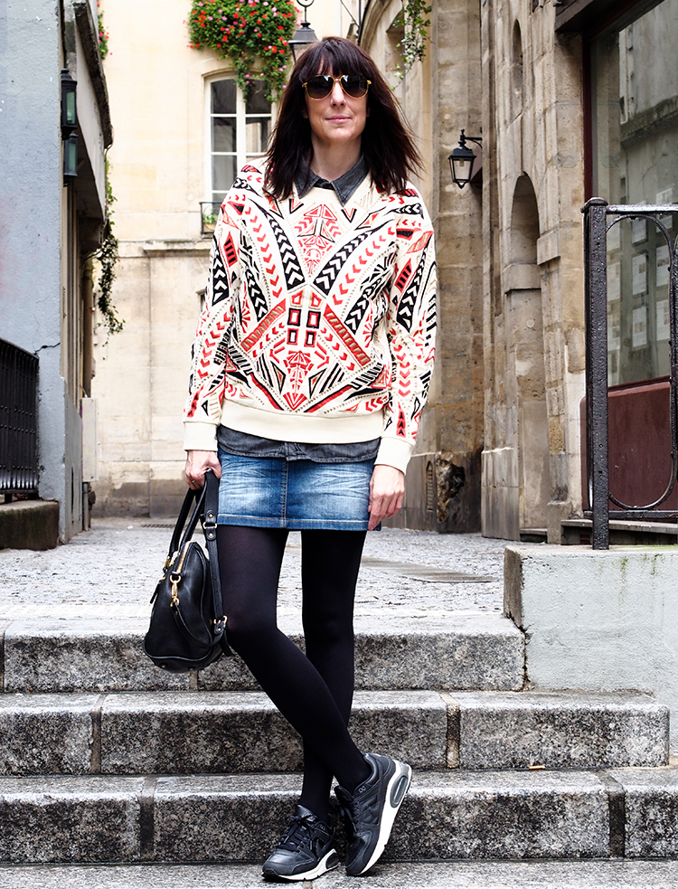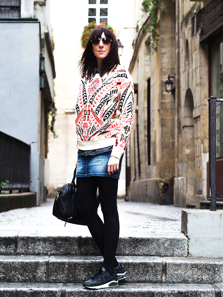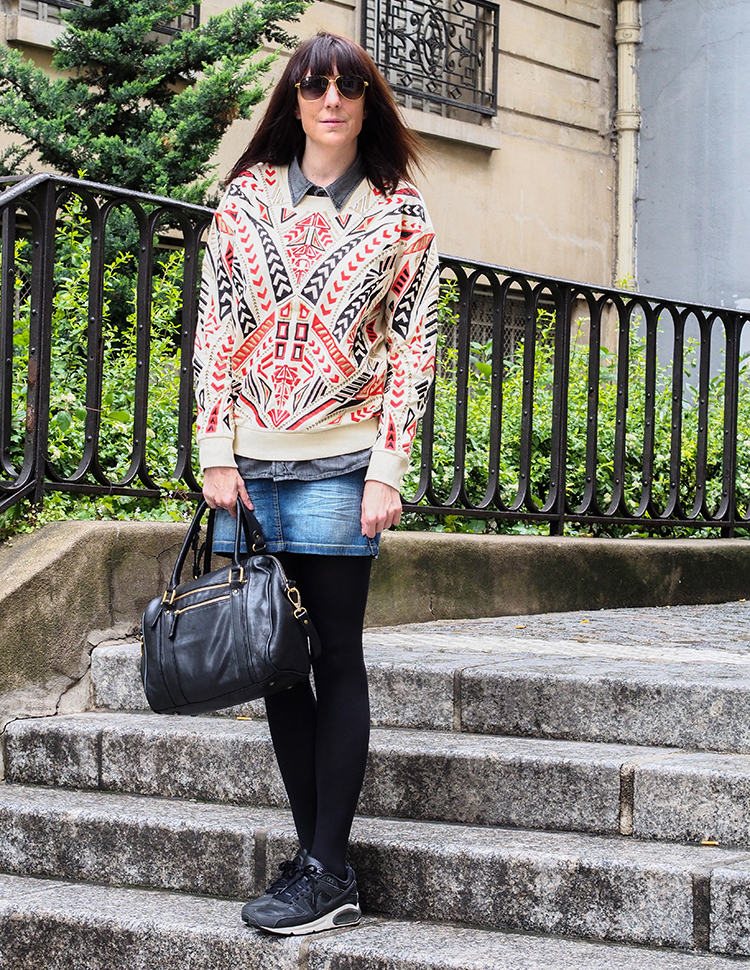 Pour le reste, on ne se refait pas… un jupe en jean et mes baskets Nike qui vont avec tout, le combo pratique quand il fait ce temps là…