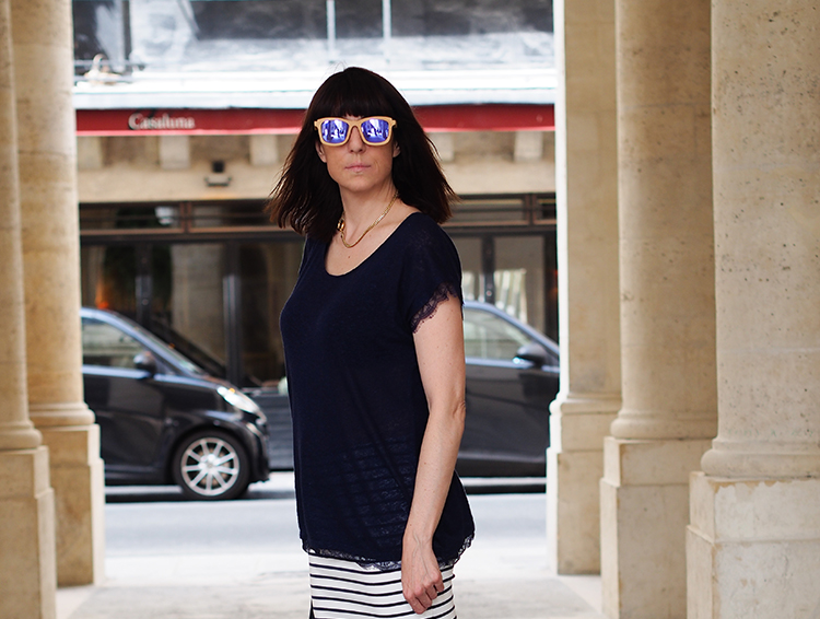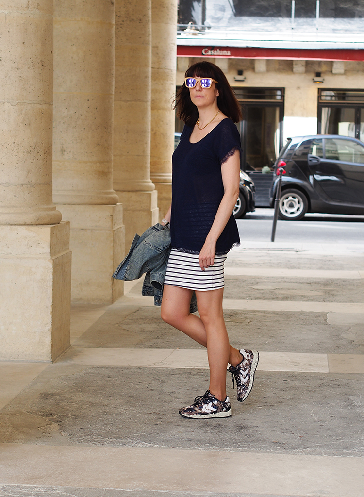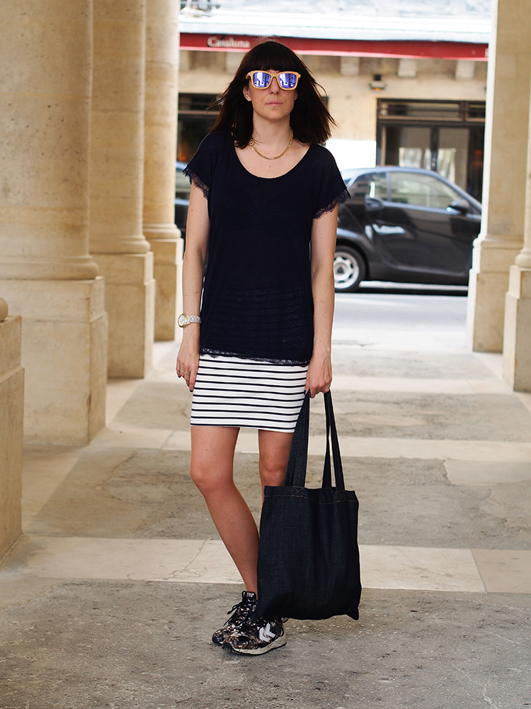 Et comme j’aime bien le mélange des imprimés j’ai décidé de les porter avec ma nouvelle Jupe H&M marin…