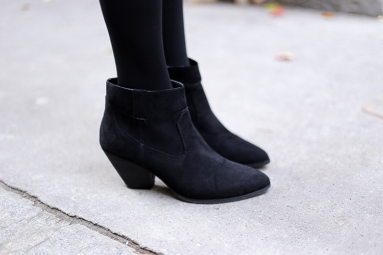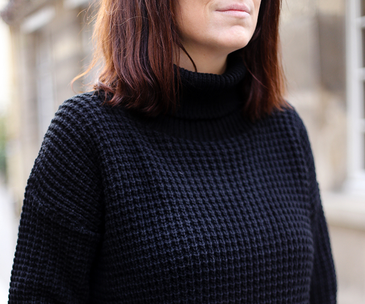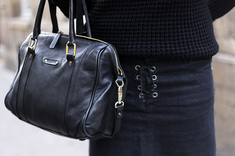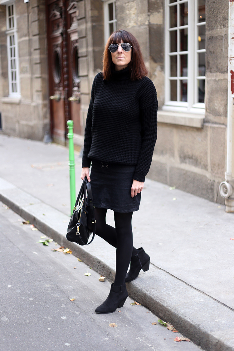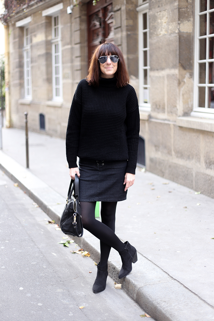Alors j’ai choisi un Pull col roulé noir, bien chaud, idéal pour l’hiver, une petite Jupe en jean pour laquelle j’ai craqué grâce à son petit détail, un petit lien à lacer, une petite paire de Collants noir l’indispensable à avoir pour porter des jupes en hiver et des Low boots noir en daim, un basique qu’on devrait toutes avoir car elles se mettent aussi bien avec une jupe qu’un jean…