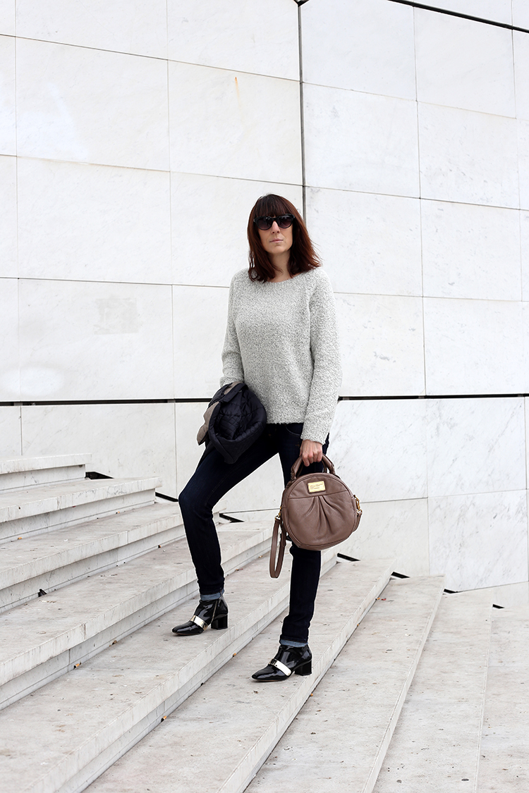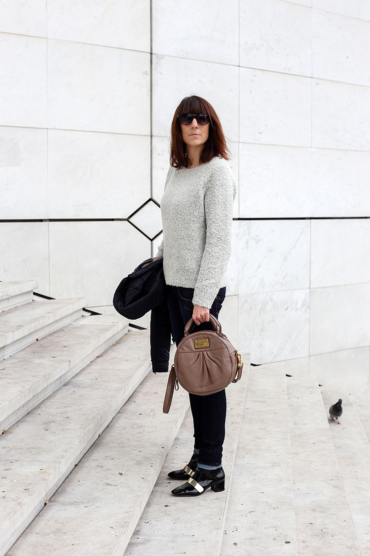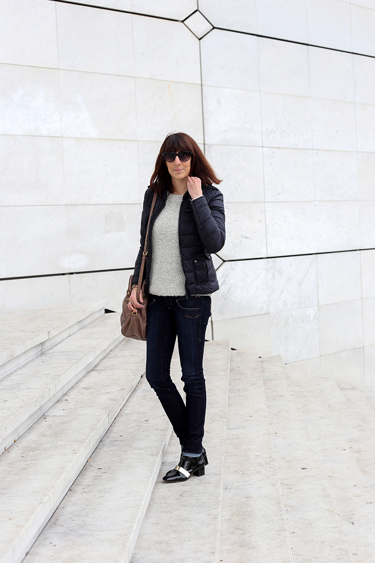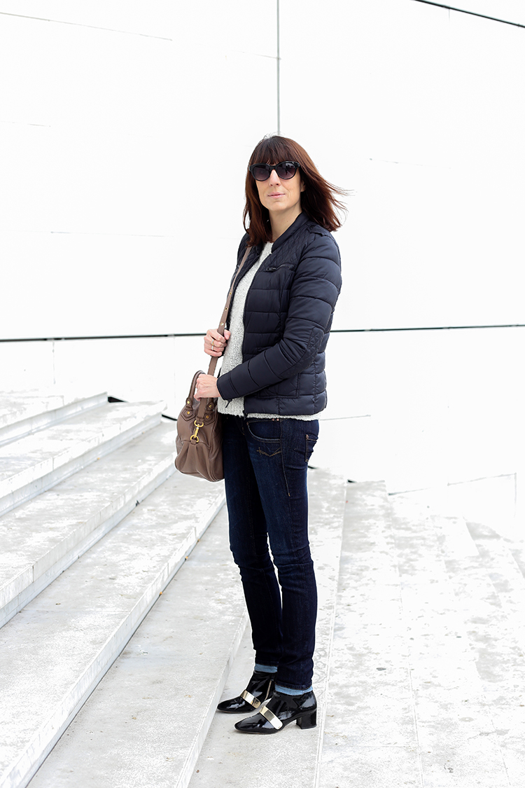 Hier il faisait pas très chaud, alors le pull s’imposait mais j’avais pas envie de porter un gros manteau bien lourd, alors j’ai opté pour cette petite doudoune fine, un peu comme celles que font Uniqlo (en promo en ce moment) ou d’autres marques d’ailleurs maintenant…