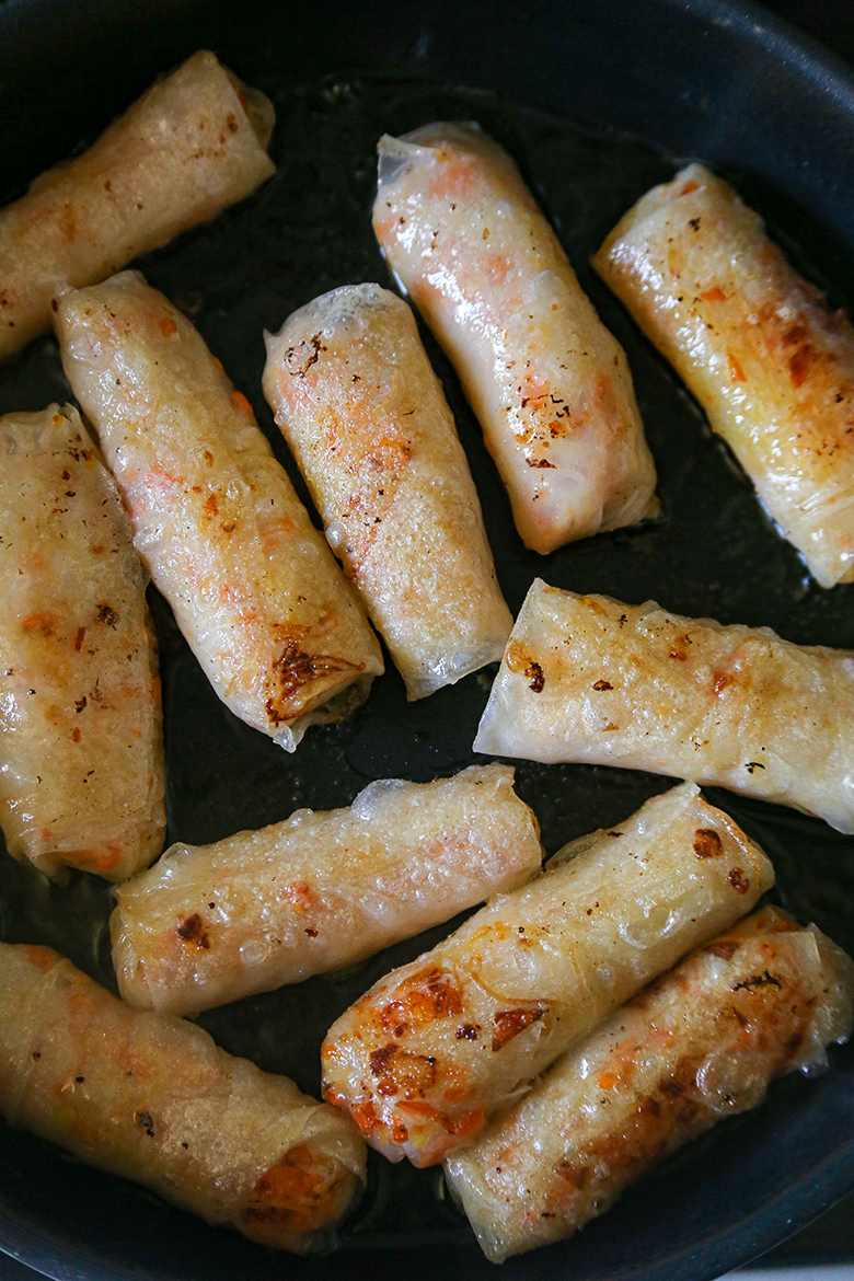 Les faire frire à la friteuse ou dans une poèle profonde rempli d’huile jusqu’à ce qu’ils soient bien cuits et colorés