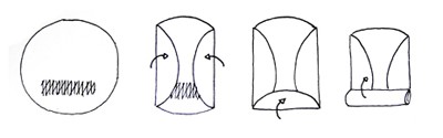 Mettre une cuillère de farce et rouler comme sur le dessin !